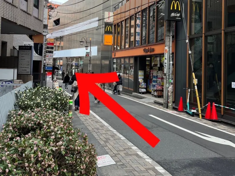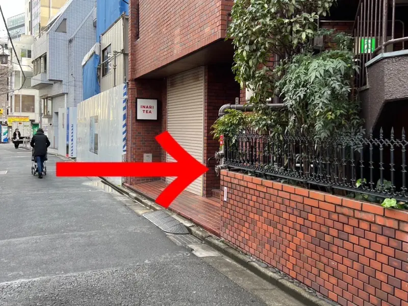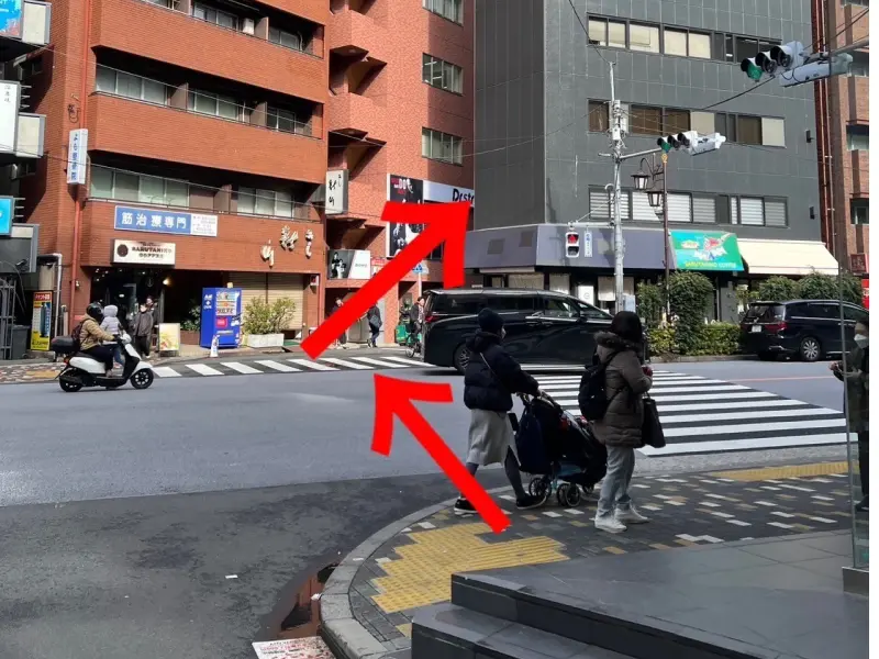 横断歩道を渡り右斜めの路地に入っていきます
